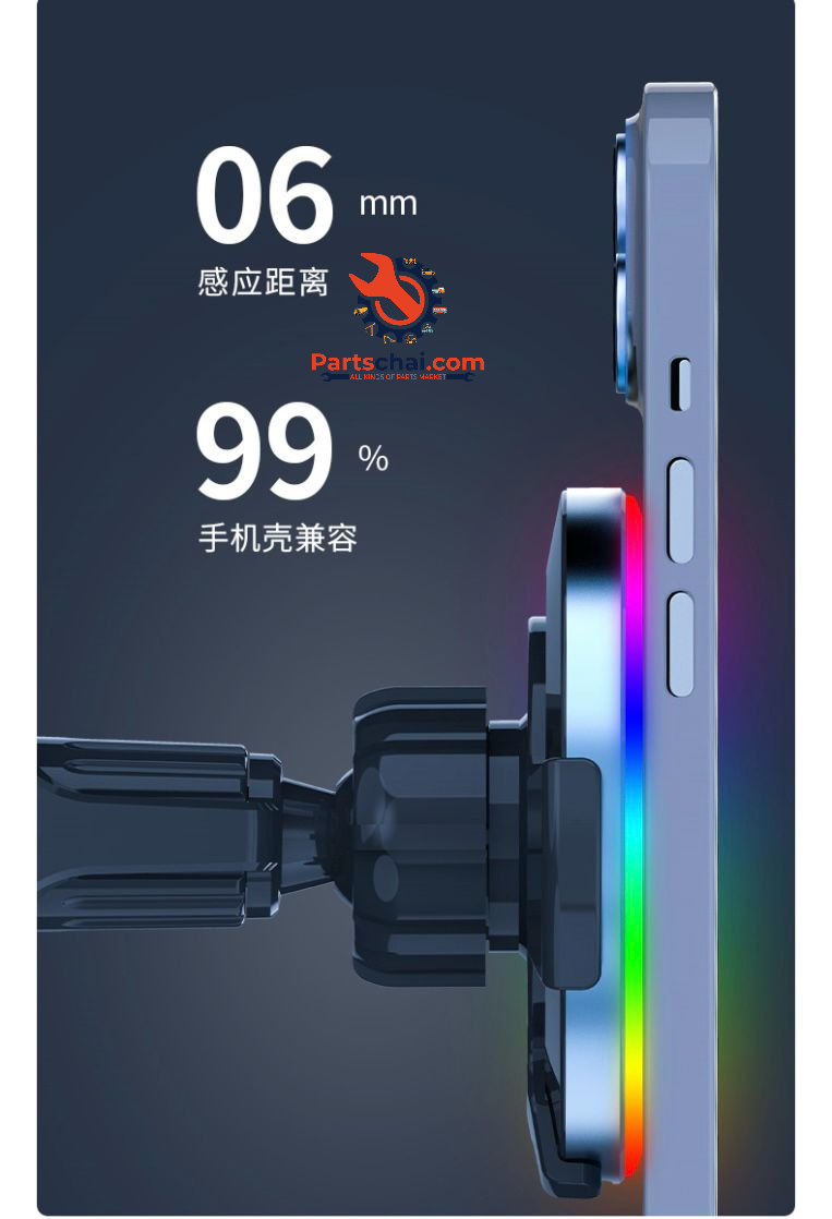 Magnetic Phone Car Mount with Light Car Phone Holder Wireless Charger T58- 15 W