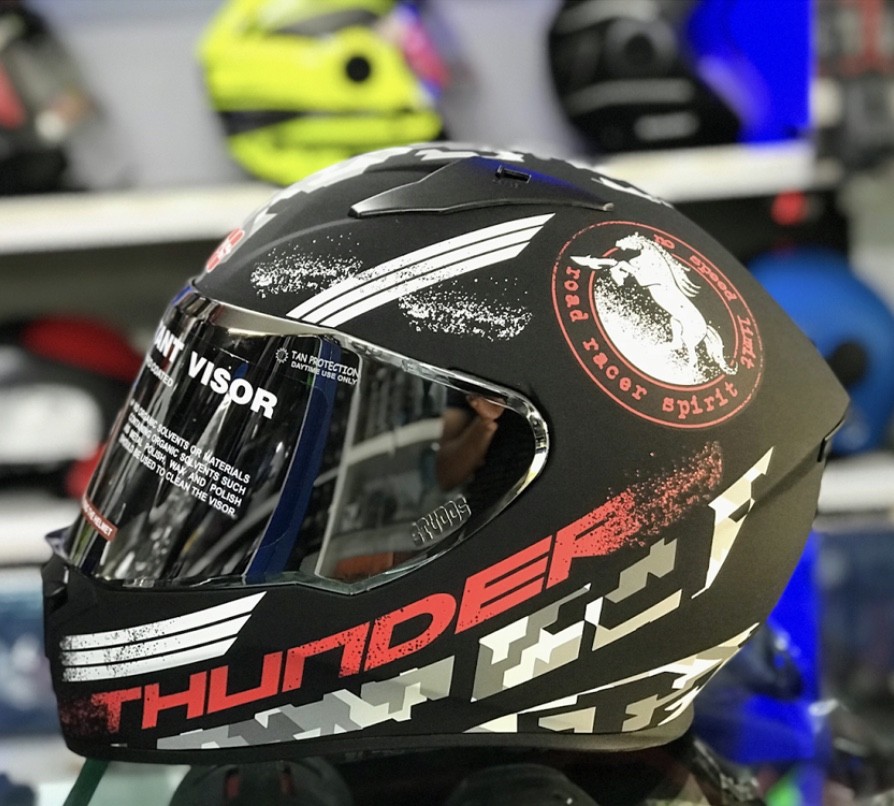 ● Aerodynamic & Assertive design. ● Washable and replaceable liner and cheek pads. ● Polycarbonate visor duly silicon hard coated for scratch resistance properties. ● Quick release chinstrap mechanism for ease of operation & safety. ● Ventilation system for more comfort to the rider while driving. ● Outer Shell injected from special high impact grade of engineering thermoplastic. ● Regulated density EPS concussion padding lined with specially treated anti allergic velveteen. ● High quality U.V. resistant Polyurethane paints used for aesthetic enhancement. Please note that, you should be absolutely sure of your helmet size before ordering. As it may not be possible to exchange or replace.